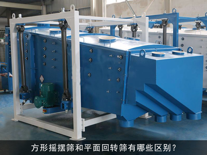 方形搖擺篩于平面回轉篩其有著一定的相似之處:都是一些長方形的篩體。但其還是有著很大的不同的例如:工作原理,篩分效果,適用物料等。