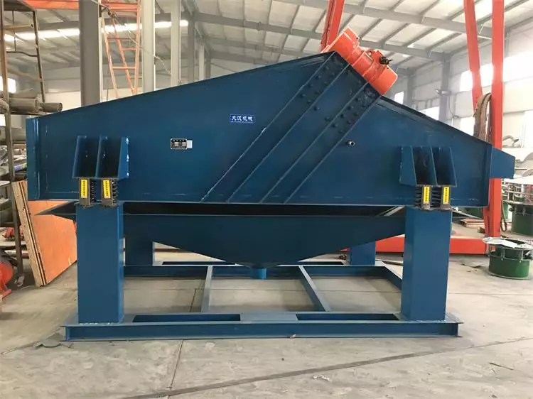 電機通過三角帶使激振器的偏心塊高速旋轉,運行的偏心塊產生很大的離心力,刺激篩箱產生一定幅度的圓周運動,篩上的物料在傾斜的篩面上受到篩箱傳遞的沖量,產生連續的拋擲運動,物料與篩面相遇的過程使小于篩孔的顆粒通過篩網,從而實現分級。