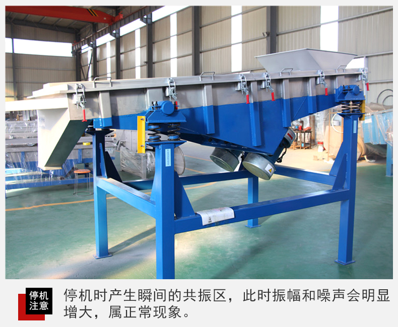 6、設(shè)備在停機(jī)時(shí)產(chǎn)生瞬間的共振區(qū),此時(shí)振幅和噪聲會(huì)明顯增大,屬正常現(xiàn)象,設(shè)備在開停機(jī)前,篩面上不得有存留物料,篩網(wǎng)需經(jīng)常檢查是否張緊、破損,如有破損要即時(shí)更換。